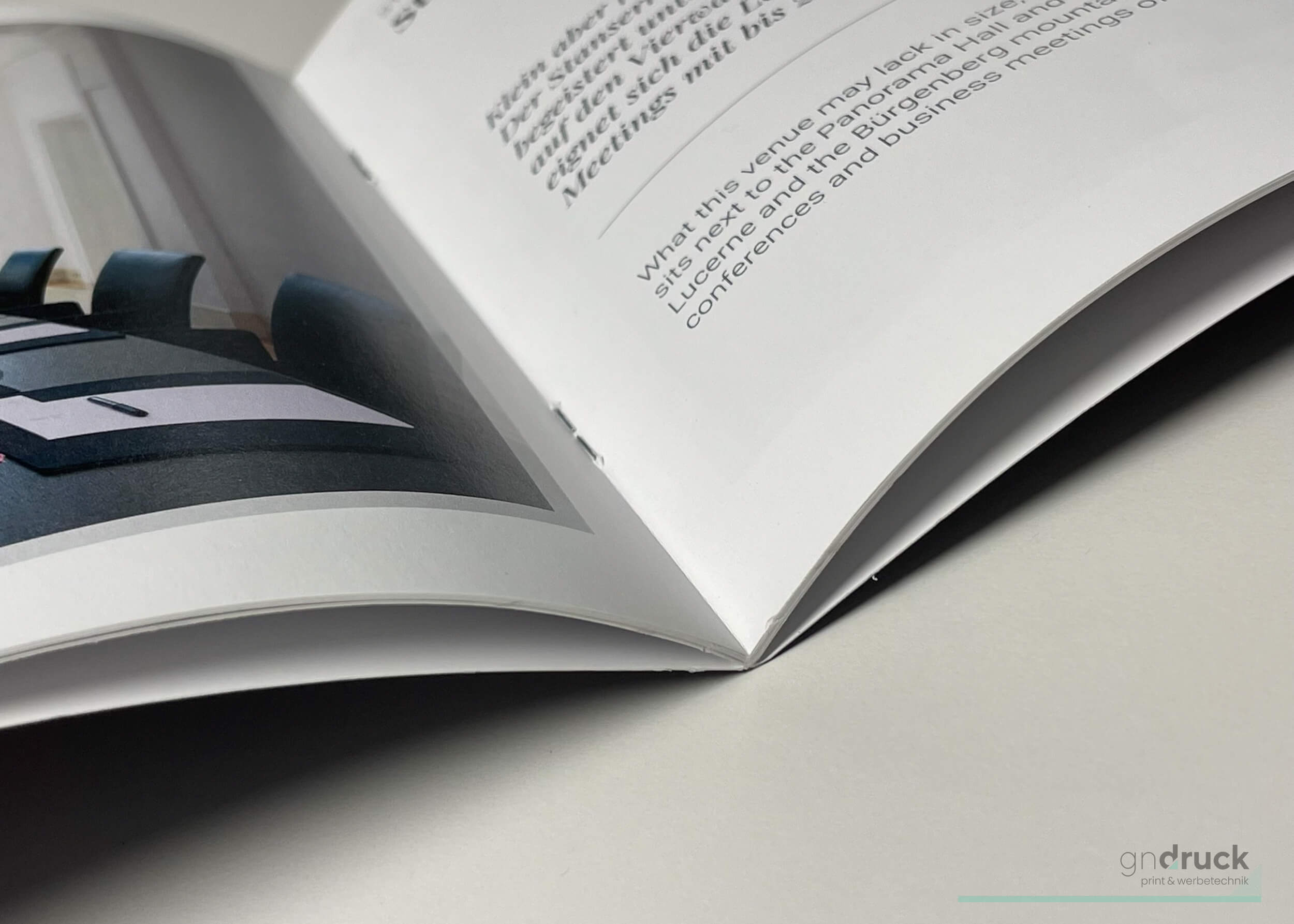 Unser System verarbeitet 6-seitige Umschläge oder Innenseiten vollautomatisch, was uns ermöglicht, auch komplexe Broschürenlayouts reibungslos und schnell zu realisieren. Egal ob einfache Informationsbroschüren oder aufwändigere Präsentationen – wir liefern Ihnen hochwertige, professionell geheftete Broschüren, die Ihren Ansprüchen gerecht werden.