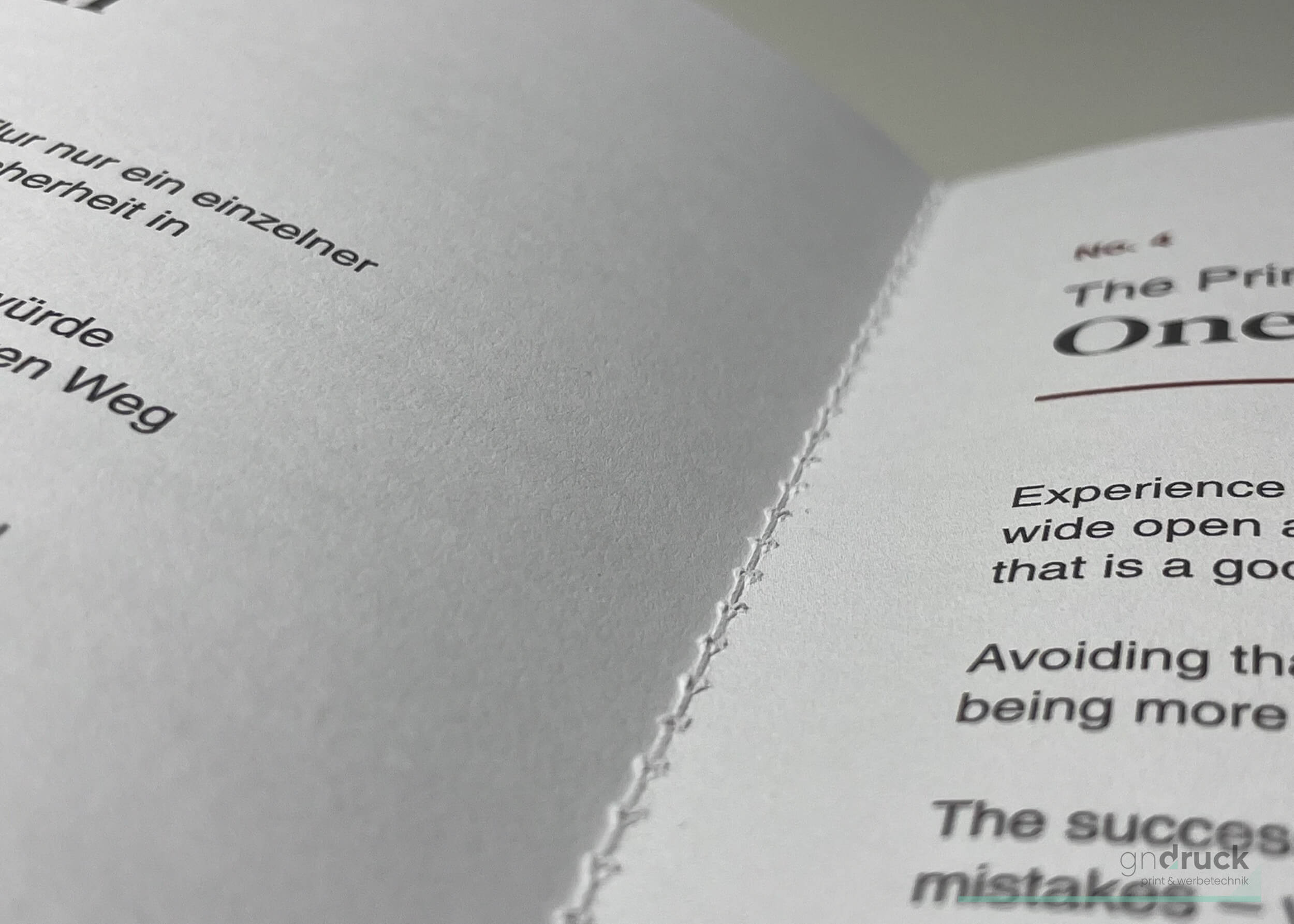 Das Fadenheften ist eine besonders stabile und langlebige Bindetechnik, bei der die einzelnen Seiten eines Buches mit Fäden zusammengeheftet werden. Obwohl es für hochwertige Bücher, die lange halten sollen, oft die bevorzugte Wahl ist, bietet dieses Verfahren auch einen deutlichen Nachteil: Es ist sehr kostenintensiv und rechnet sich meist nur bei sehr anspruchsvollen Projekten.