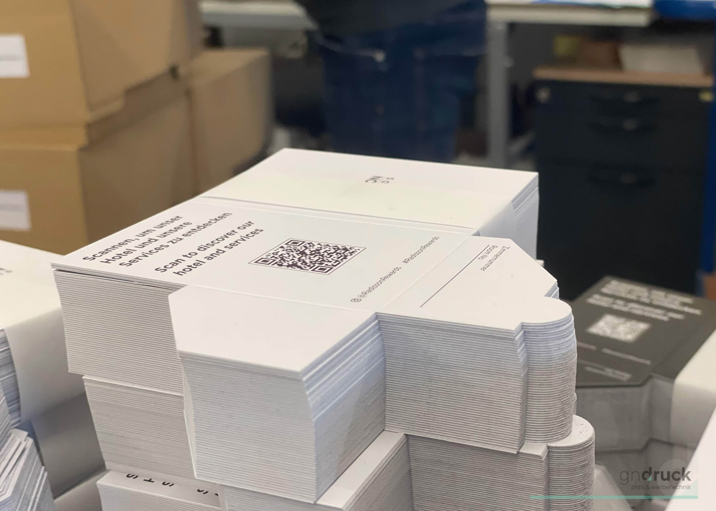 Stanzen ermöglicht das präzise Ausschneiden individueller Formen – ideal für Verpackungen, Etiketten, Klappkarten oder kreative Werbemittel.